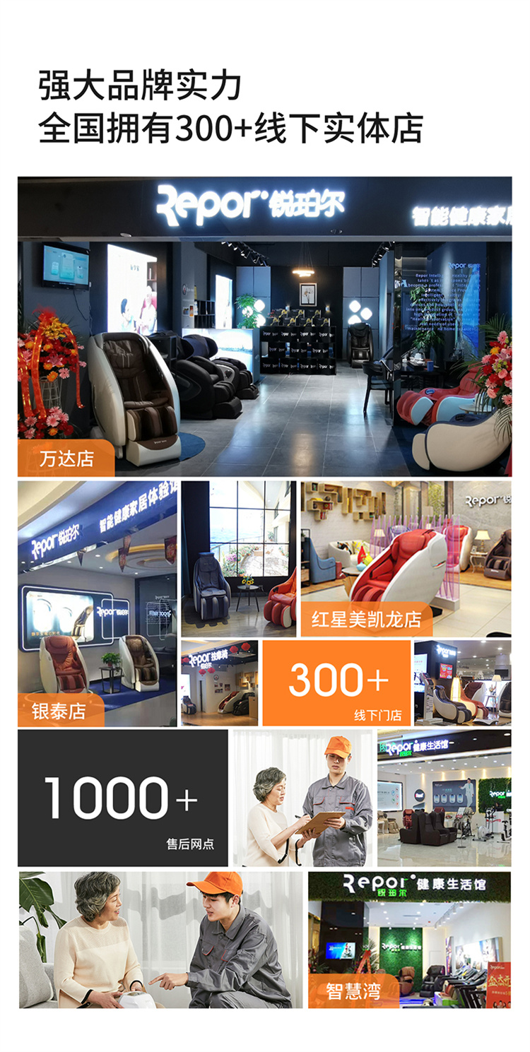 锐珀尔按摩椅、艾力斯特按摩椅和颈椎按摩仪等多款康体器材,力求为您提供完美的健身房解决方案。